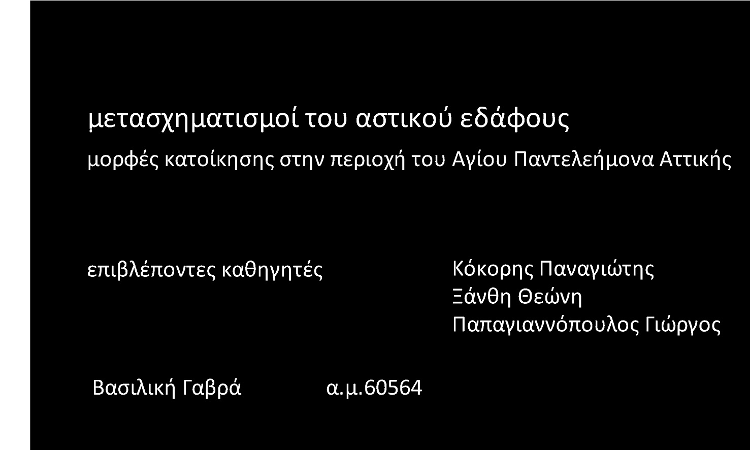 2. Διπλωματική Εργασία Βασιλικής Γαβρά: "Μετασχηματισμοί του Αστικού Εδάφους - Μορφές Κατοίκησης στον Άγιο Παντελεήμονα Αττικής"